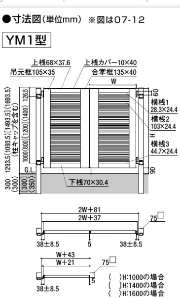 開き門扉AB YM1型 片開き 柱使用