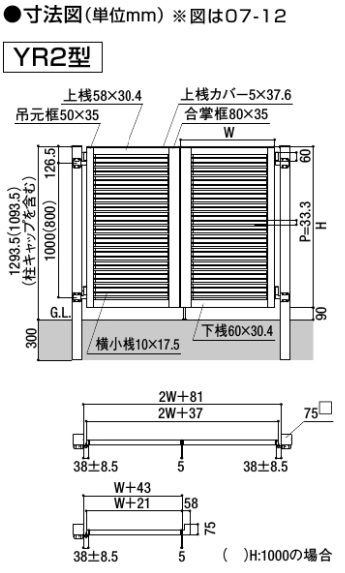 開き門扉AB YR2型 両開き 柱使用